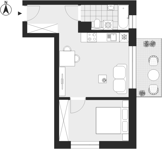 - Charakterystyka mieszkania: 39,21 m², 2 pokoje, 1 łazienka; stan: deweloperski